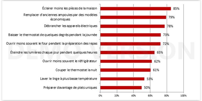 La concession la plus difficile concerne apparemment la télévision et l'ordinateur : deux répondants sur trois assurent ne pas vouloir regarder moins la TV pour économiser du courant ; et un sur deux annonce son intention de travailler ou de jouer autant à l'ordinateur. L'extinction de l'éclairage des autoroutes ou des bâtiments publics aux heures de forte demande est une autre mesure d'économie fréquente (74 %).