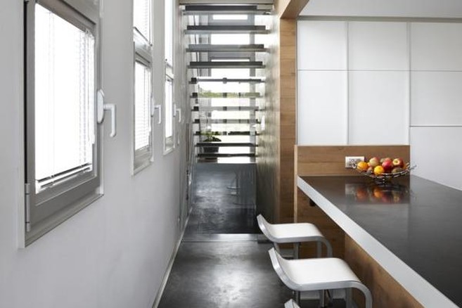 Dès le départ, l’architecte savait que cette parcelle requérait une ‘boîte à vivre’ dans la plus pure tradition Le Corbusier : sans fioriture, en toute simplicité, discrète mais fonctionnelle. Le concept épuré s’est donc imposé à lui comme une évidence. "L’implantation d’une boîte à vivre était un choix logique sur cette petite parcelle", constate l’architecte. "Il s’agissait de mettre à profit chaque mètre carré tout en créant une sensation d’espace à l’intérieur du volume compact." Ce défi, Daniël l’a relevé à bras-le-corps, comme pour prouver qu’avec une bonne dose de créativité, il est possible de réaliser de très grandes choses sur une surface limitée. "Les terrains à bâtir se font de plus en plus rares, les parcelles deviennent de plus en plus petites et les habitations quatre façades ne sont tout simplement plus dans l’air du temps. Dans le futur, nous vivrons regroupés dans des zones résidentielles. Cette maison s’inscrit à merveille dans cette tendance. Elle ressemble à un petit îlot, une unité indépendante pouvant être reproduite selon différentes configurations. Cette habitation pourrait être multipliée à l’infini."