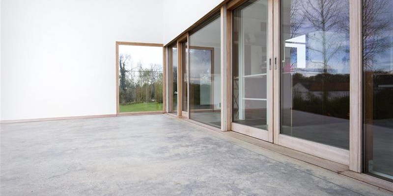 L’architecte a concilié le côté pratique et esthétique du béton dans une approche moderniste. Dans cette habitation, l’utilisation du béton est apparue comme une évidence. Le béton, telle la coque d’un bateau, fait office de socle pour la maison, répondant ainsi parfaitement aux contraintes d’un terrain gorgé d’eau et permettant dès lors au maître d’ouvrage de concrétiser son rêve…Pour construire sur ce terrain humide sans surélever le bâti et garder ainsi l’ancrage à l’espace public, un socle de béton, traversé de raidisseurs, a été coulé sur toute la largeur de la maison, telle la coque d’un bateau. Point de départ de la construction, ce socle rigide est en quelque sorte posé sur l’eau, et ses caractéristiques uniques garantissent au bâtiment une coque protectrice. Une ossature de bois, légère et répartie sur toute la surface, vient épouser cet anneau de béton, et les matières échangent leurs propriétés naturelles en parfaite harmonie, offrant isolation et esthétique.