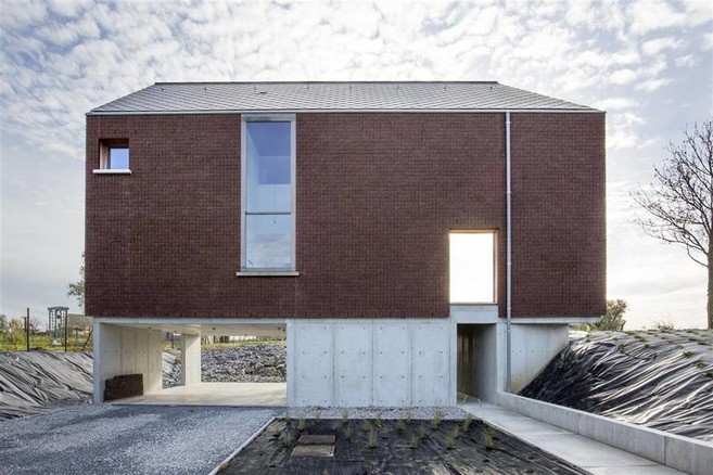 Regard moderne sur son contexte, la bâtisse reflète le patrimoine hesbignon et renvoie sans cesse des images de son architecture. Ainsi, l’aspect carré et structuré des briques rappelle la trame gaufrée des cours de fermes. Elancés vers le ciel, les gabarits respectent ceux de la région. Chaque espace est judicieusement exploité, comme ces greniers aménagés en chambres-studios. Tout en étant techniquement parfaitement armés, les voiles de béton préservent une apparence naturelle, avec ça et là des grains, des poches qui font vivre la matière. Enfin, la palette de couleurs est tout en douceur, mélange de gris et de beiges, discrète comme le sont les gens d’ici...Découvrez d'autres photos de cette maison :