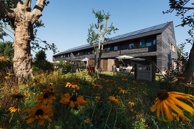 Les sept maisons clustérisées de façon compacte ont bénéficié d’une excellente isolation thermique et d’une bonne étanchéité à l’air. Elles présentent dès lors une faible consommation d’énergie, produite de façon économique et renouvelable par des panneaux solaires photovoltaïques.La clusterisation a permis de réduire la part du prix du terrain dans le budget construction. La construction massive au moyen de matériaux en terre cuite garantit une longue durée de vie et un minimum d’entretien. La zone résidentielle et l’espace extérieur commun nécessitent peu d’entretien. La consommation d’eau potable a été limitée par une récupération maximale de l’eau de pluie, rendue possible par les toitures en pente ainsi que par l’utilisation d’appareils économiseurs d’eau.