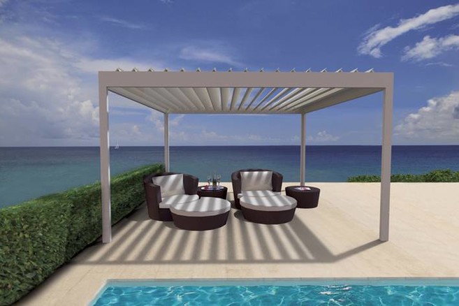 - Protection solaire et ventilation réglables grâce à des lames orientables en aluminium