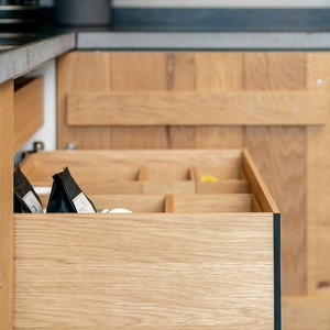 Depuis 2014, nous lançons sous la marque TA’OR le tiroir en bois fabriqué industriellement sur le marché. Le tiroir, produit à Sint-Niklaas, est une alternative révolutionnaire au tiroir en bois massif et un exemple du mariage parfait entre le design et la technique. TA’OR a déjà remporté différents awards internationaux