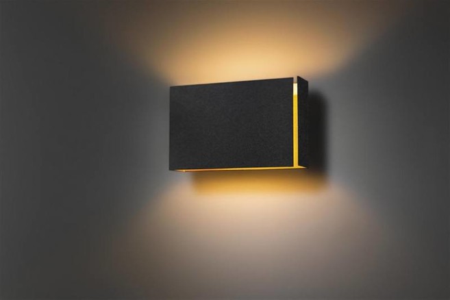 Split de Modular est une applique murale rectangulaire qui diffuse une lumière subtile. L’intérieur doré crée un effet chaleureux. De plus, son éclairage LED est peu énergivore. Création de Couvreur & Devos.Split de Modular, plusieurs formats et couleurs, à partir de 330 euros.