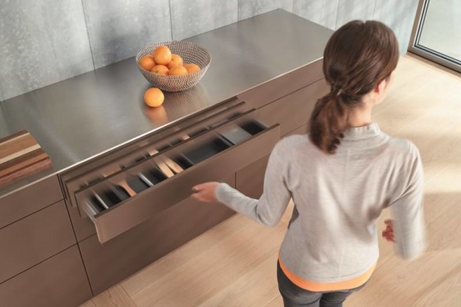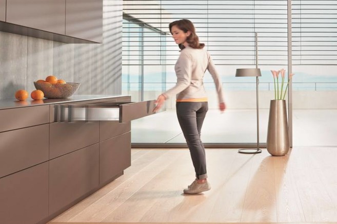 À l’occasion de Batibouw 2015, Blum lance un tout nouveau dispositif mécanique qui contribue au confort de mouvement plus fluide et plus silencieux des meubles de cuisine sans poignées : Tip-on Blumotion. Deuxième nouveauté du fabricant autrichien, le « Servo-drive Flex pour réfrigérateurs », une technique qui permet de réaliser une cuisine intégralement sans poignées.