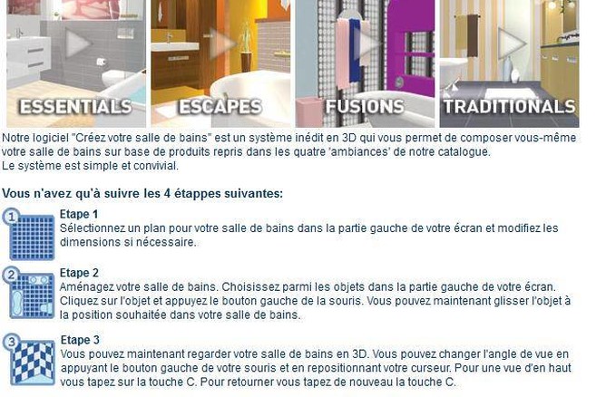 Le logiciel de Van Marcke "Créez votre salle de bains" est un système inédit en 3D qui vous permet de composer vous-même votre salle de bains sur base de produits repris dans les quatre 'ambiances' de notre catalogue.