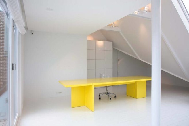 Ce projet de Bart Van Wijk alliait architecture d’intérieur et architecture tout court. Cet ancien immeuble commercial situé le long des canaux d’Amsterdam comprend cinq niveaux, autrement dit un fameux potentiel en termes d’espace. Comme plusieurs entreprises s’y étaient établies, l’ensemble était très cloisonné et les étages séparés les uns des autres.