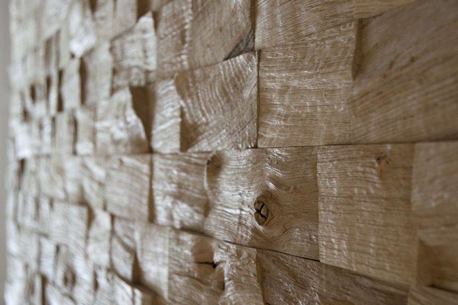Le designer Klaus Wangen s’est fait remarquer par un habillage mural en bois, plein de fantaisie mais relativement robuste. Ce revêtement se compose de panneaux en bois arborant une surface rugueuse aux structures profondes. Cette surface unique est obtenue en fendant le bois, une technique vieille comme le monde. En fait, c’est même la première technique de travail du bois que l’homme a découverte. Klaus Wangen est allé rechercher cette technique ‘du fin fond des âges’ pour créer ainsi cette finition murale des plus créatives. Il a modernisé la technique pour pouvoir fendre de plus gros morceaux de bois. A l’heure actuelle, Wangen propose du chêne, du hêtre, du merisier et du noyer dans sa gamme. Seules ces essences de bois dur donnent la structure de surface souhaitée après avoir été fendues. L’aspect de la structure superficielle est à peine influencé au moment de la fente, parce que le bois éclate naturellement le long de ses nervures. Le bois ainsi fendu est mis à sécher pendant plusieurs années, pour être ensuite soumis à un traitement intensif afin d’ôter toute tension. Pour terminer, les panneaux sont triés afin de former un ensemble et pour subir un traitement de surface.