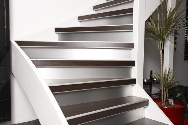 - Le verre, les matériaux composites, la pierre naturelle ou les carreaux céramiques peuvent être utilisés pour parachever un escalier.
