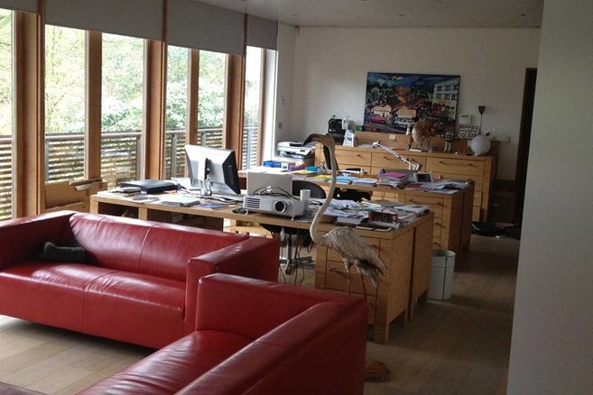 Pierre Kroll : Malheureusement, devrais-je dire : mon bureau. « Malheureusement » parce que le travail n'est pas la seule valeur dans la vie mais j'ai construit un peu ma maison autour de lui. Pendant 20 ans, j’ai travaillé dans une pièce d'une maison de ville. Trop petite, c'est devenu deux pièces mais il y avait peu de lumière naturelle. J'étais comme un étudiant qui étudie dans sa chambre. J'ai acheté une maison en dehors de la ville et l'ai complètement modifiée autour d'un grand bureau, avec une coursive extérieure, pleine de lumière, une vue sur des grands arbres, une cage d'escaliers séparée et .... des mètres et des mètres de tiroirs.