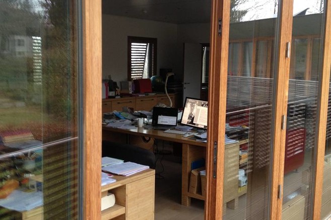 Pierre Kroll : Il y a trois ou quatre ans… ça ne s'est pas fait en un jour. Pendant 9 mois, je venais travailler ici, dans cette maison sur les hauteurs de Liège, proche du Campus universitaire du Sart-Tilman. Puis je rentrais le soir dans la maison familiale avant de déplacer tout le monde ici.