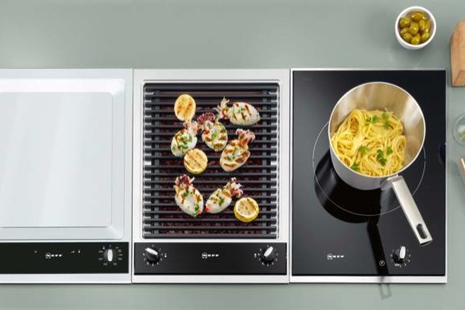 Le système de cuisson modulaire de NEFF, baptisé dominos, se compose de modules dont la source de chaleur et la fonction diffèrent. Désormais, les dominos de 40 cm de large sont au nombre de quatre. En effet, un quatrième élément, la table Teppan Yaki, est venu s’ajouter au trio déjà existant : une table de cuisson à gaz, une table de cuisson à induction et un grill pierre de lave.