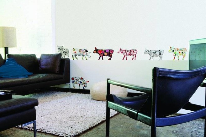 Afin de créer différentes lignes de papier peint, plusieurs vaches de la CowParade ont pris la pose ! Home Interiors a mis en avant certains accents du design de la vache et les a décliné à son gré en différents coloris. Déclinaison d'un petit bout de vache…