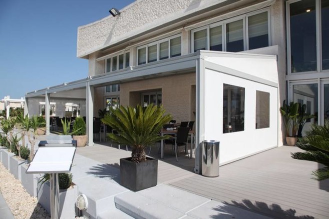 Le système peut être monté sans problème avec des screens résistants au vent sur les côtés et/ou la face avant. Grâce à une solution en triangle, l’espace peut être complètement fermé, formant ainsi un cocon protecteur, sans que l’on aie l’impression de se sentir enfermé. La vue vers l’extérieur est sauvegardée, grâce au caractère translucide des screens et aux ‘fenêtres’ qui peuvent être relevées ou abaissées en même temps que les toiles. Lagune® s’adapte à vos besoins. La gamme très étendue de couleurs de toiles et de profils vous permet de l’intégrer à n’importe quel style de construction. Si vous le désirez, il est aussi possible de personnaliser la toile avec votre logo.
