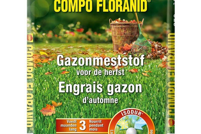 Outre un engrais d’entretien, un engrais comprenant un herbicide et un agent anti-mousse, il existe désormais aussi un engrais d’automne Compo Floranid spécial. L’engrais gazon Compo Floranid est pauvre en phosphore et la croissance n'est pas stimulée inutiliment en hiver. La haute teneur en potassium nourrit la pelouse et lui assure une résistance plus élevée, sans laisser aucune chance aux mauvaises herbes ou à la mousse. Tout comme les autres engrais, il contient la technologie unique Isodur et présente dès lors les avantages suivants :