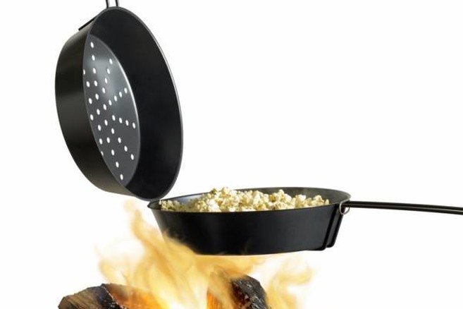 Grâce à la poêle à pop-corn, préparez vous-même en un tournemain le pop-corn le plus délicieux. Versez un peu d'huile dans la poêle et ajoutez une poignée de maïs. Fermez le couvercle de la poêle et maintenez cette dernière au-dessus du feu d'un barbecue ou d'un brasero grillagé. Après quelques minutes, le maïs commence à exploser. Secouez régulièrement pour éviter que les grains n'attachent. Lorsque le bruit cesse, le pop-corn est prêt. Ajoutez encore un peu de sucre ou de sel et... régalez-vous!