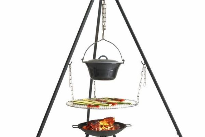 Remontez dans le temps et créez dans votre propre jardin l'authentique ambiance du feu de camp grâce au nouveau trépied de Barbecook. Cette tradition venue de Scandinavie se fraye à présent un chemin vers le reste de l'Europe. Vous placez le trépied au-dessus d'un feu de camp ou d'un brasero en fonte. Grâce aux différents accessoires, il est agréable de préparer de bons plats à l'extérieur. Les pizzas, la paella ou les mélanges de légumes sont placés dans la poêle; les soupes, les pot-au-feu ou le vin chaud se cuisent dans la cocotte. Grâce à la grille, vous obtenez les meilleures grillades. La hauteur de la grille, de la poêle ou de la cocotte est facile à régler grâce aux chaînes fournies. De plus, le trépied est facile à emporter chez des amis ou au camping, et il se range de manière très compacte après utilisation.