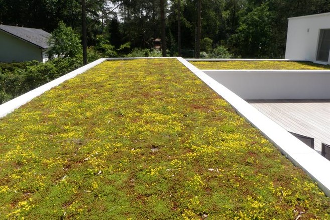 Le tapis de sedum rend l'ensemencement totalement inutile. Le substrat alvéolaire est pourvu de cavités dans lesquelles se développent les racines des plantes et où les eaux de pluie sont temporairement stockées. A Bruxelles-Capitale et au nord du pays, plusieurs communes accordent des subsides pour l'aménagement de toitures végétales.
