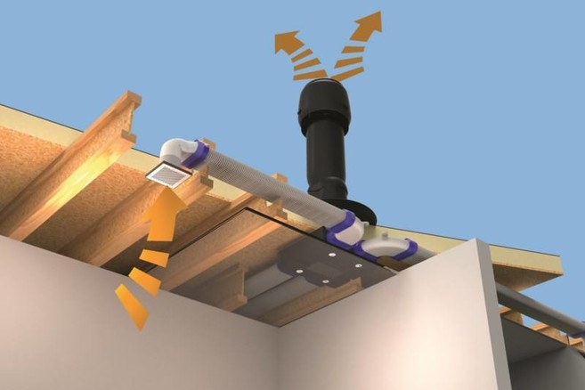 À l’aide de capteurs dynamiques, le système contrôle l’humidité de l’air et détecte la présence de personnes dans une pièce. D’après ces mesures, l’appareil adapte le débit de ventilation de manière intelligente. Sa particularité réside dans le fait que le ventilateur est intégré à la sortie de toiture et se trouve donc à l’extérieur de la structure du bâtiment, ce qui garantit un fonctionnement silencieux.