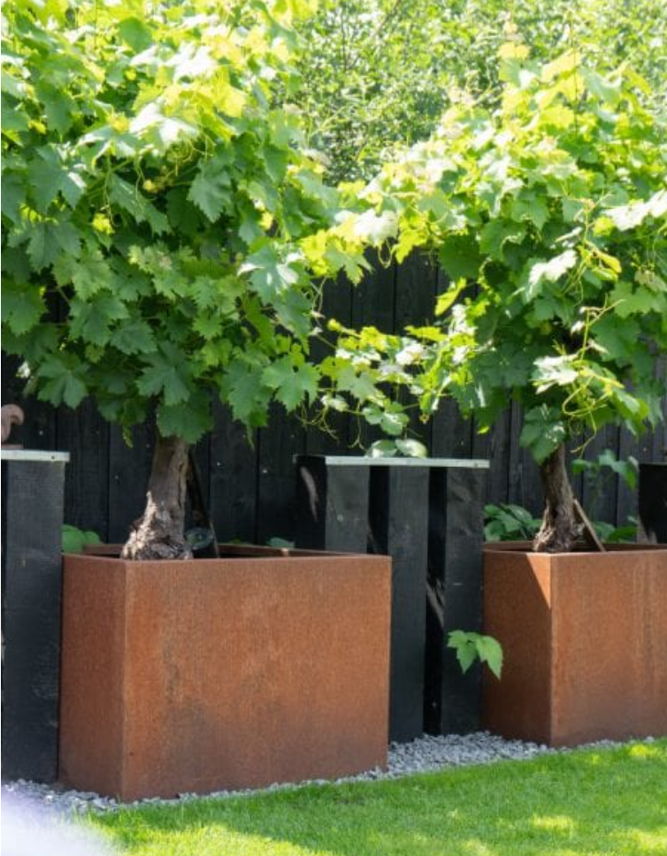 Ook is het een goed idee om strakke lijnen aan te houden bij het hanteren van de industriële stijl. Ronde vormen horen niet thuis in een industriële tuin, dus houdt het vooral rechthoekig en strak. Dit geldt niet alleen voor de plantenbakken, maar bijvoorbeeld ook de tegels. Kies grote tegels met een effen tint, zodat het geheel rustig en ‘clean’ oogt. Grote tegels zijn geen must, maar het geeft wel een meer ontspannen uitstraling en dit scheelt ook een hoop qua onderhoud. Je hoeft namelijk minder kieren onkruidvrij te maken!