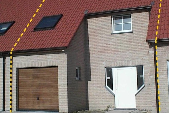 - Als de gemene muur op de scheidingslijn staat (te paard), dan moet je slechts de helft van de waarde van deze muur betalen. De waarde van de grond hoeft niet betaald te worden.