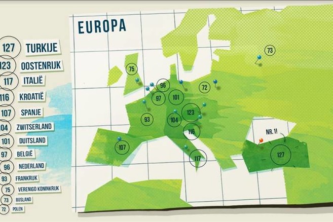 België eindigde in dit onderzoek op de 8ste plaats. In Turkije, dat een IQ van 127 behaalt, blijkt de groene ingesteldheid het grootst. Oostenrijk volgt met een IQ van 123 en Polen staat op de laatste plaats met een IQ van 72. Het volledige landenoverzicht is te vinden op www.mygreeniQ.com.