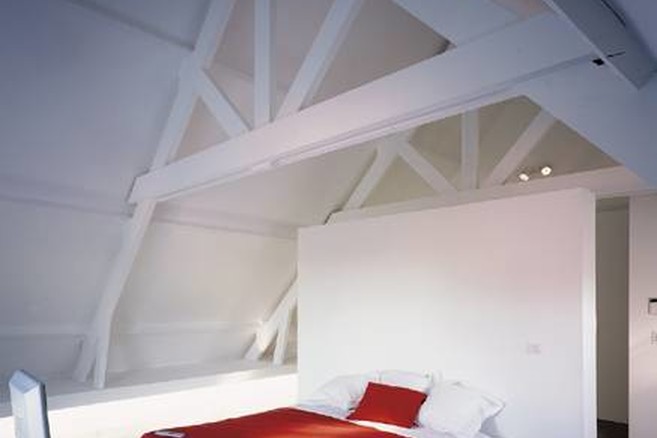 Boven heerst een heel andere sfeer. Daar voert wit de boventoon. Daardoor komen de vele rode accenten extra goed tot uiting. De ouderlijke slaapkamer heeft veel weg van een open loft.