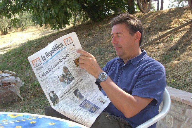 “In de hoogzomer kom ik een drietal weken maar ook in het voorjaar en het najaar als ik de tijd vrij heb. Maar ik kom hier niet om alleen te genieten. Mijn familie en vrienden zijn hier allemaal welkom. Ik bouw in Italië mijn sociale leven uit. Het is dan dubbel genieten op deze manier,” droomt Rudi weg. De reden waarom Rudi voor dit huis koos? “Ik wilde nog een stommiteit doen voor ik 40 werd, en dit was ze dus. Toen ik in de humaniora zat, gingen we naar Umbrië op schoolreis. Met hier telkens terug naartoe te komen, kon ik niet anders dan hier een woning kopen. De wijngaard en het uitzicht beloofden de hemel op aarde. Van op dit hellende terrein heb je een immens uitzicht naar alle windrichtingen. De zieke wijngaard heb ik moeten rooien, maar intussen is die opnieuw aangelegd om landwijn te kunnen produceren. Gelukkig kon ik wel de olijfgaard redden. Familie en vrienden kan ik zo in olijfolie voorzien."