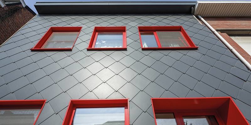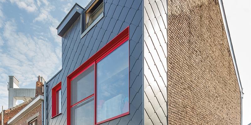 De bouwheer wilde van een oude winkel een rijwoning maken. Een klassieke rijwoning? Nee, helemaal niet. Architectenbureau Atelierkyoto koos voor een opvallend gevelmateriaal van Eternit. En ook de ramen zijn meer dan bijzonder, zij lijken bewerkt met rode lippenstift.