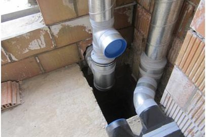 Het resultaat is dat er ofwel spiraalkokers ofwel een of ander instortsysteem gebruikt zal worden om de lucht in of uit de kamers te krijgen. Bij spiraalkokers denkt iedereen onmiddellijk aan de grote omvang van de stalen buizen. Bij instortsystemen wordt wel eens vergeten dat vele kleintjes ook veel plaats zullen innemen. In de vloer (of de chape) zal dat best meevallen, maar vaak moeten deze instortkanalen ergens samenkomen om van de ene naar de andere verdieping te gaan. Je zult snel zien dat je met 1 of 2 spiraalkokers tussen de verdieping gemakkelijker een mooi afgewerkt resultaat kan bekomen, maar dat de bundel instortkanalen tussen verdiepingen nog wat afwerking vereist.