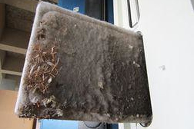Het tweede deel van het antwoord is eenvoudig aan te tonen met een foto. Als de filter zeer vuil is moet deze vervangen worden. De onderstaande foto toont een afvoerfilter – dat is dus lucht die van binnen naar buiten gaat – wanneer deze 1 jaar in gebruik is. Ter vergelijking zie je ernaast de zuivere filter die in het toestel gestoken wordt.