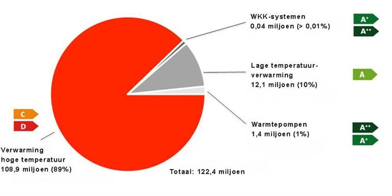 Vandaag is de condensatieketel het meest geïnstalleerde verwarmingsapparaat in nieuwbouw en op de vervangingsmarkt. De afgelopen twee decennia bouwden de lagetemperatuurketels – waar de condensatieketels een belangrijk deel van uitmaken - een Europees marktaandeel op van 10%. De condensatieketel heeft een rendement van 109%. Niet mis, maar de toekomst is veel belovend.Energie-efficiëntie
