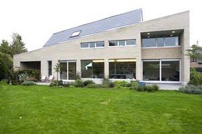 Het enige merkwaardige aan de bouwvoorschriften lag in het feit dat het koppel twee loten bouwgrond gekocht had en ze wel in die volledige breedte konden bouwen, op voorwaarde dat het om een hellend dak ging. Later zou blijken dat hier nog een aparte invulling voor gebeurt.