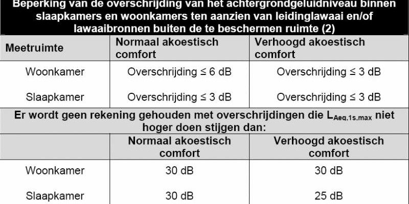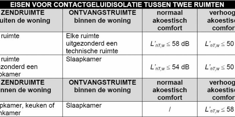 De geluidsnorm legt eisen op inzake de lucht- en contactgeluidsisolatie van specifieke gebouwdelen en inzake de geluidsabsorptie in bepaalde ruimtes. Deze eisen vervallen wanneer wettelijke regelingen andere eisen opleggen, bijvoorbeeld in de buurt van de Waalse vliegvelden.