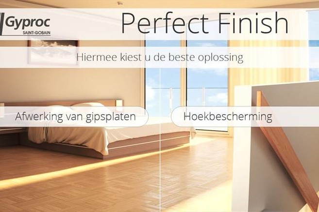 Voor de afwerking van gipsplaten past men vaak nog afwerkingsklasse F2a toe, wat niet altijd voldoende is. Perfect Finish laat je uidelijk zien hoe een verandering van lichtinval een invloed kan hebben op het zichtbaar worden van voegen op wanden en plafonds, zelfs nadat het oppervlak geschilderd is. De voegproducten van Gyproc, zoals ProMix Light, Premium en Airless F en S, kunnen dit probleem verminderen of zelfs vermijden. Deze voegproducten zijn gemakkelijk te verwerken en hebben een minimale krimp.Ook de afwerking van hoeken laat soms nog te wensen over. Vaak gebruikt men geen hoekprofielen of gebruikt men metalen hoekprofielen die wel sterk zijn maar niet flexibel, waardoor ze niet voldoende bescherming bieden. Perfect Finish laat je zien wat de gevolgen zijn van hoeken die niet beschermd zijn door stootvaste hoekprofielen. Gyproc heeft verschillende innovatieve hoekprofielen, zoals EasyFlex, AquaBead en Optimus, die jouw hoeken beschermen zodat ze er mooi en strak blijven uitzien. Bovendien zijn deze hoekprofielen snel en gemakkelijk te plaatsen.