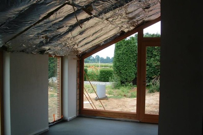 • In de ruwbouw van een bestaande woning is het isoleren van de bestaande constructies het basisprincipe. Dit kan gaan van het isoleren van het bestaande dak tot vloer en wanden alsook het vervangen van de bestaande ramen en deuren.