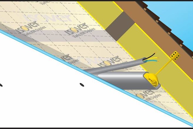 Isoleren aan de binnenzijde is de eenvoudigste en goedkoopste oplossing om een hellend dak (bijkomend) te isoleren. Omdat minerale wol gemakkelijk op maat kan worden gesneden en het kleinste hoekje kan opvullen, is het een klus die je gemakkelijk zelf kan doen, zolang je maar voldoende aandacht hebt voor een perfecte luchtdichtheid van de isolatie, voor een piekfijne afwerking met gipsplaten en voor een integratie van de elektrische leidingen zonder doorboringen.Het nieuwe Suspente PlaGyp I-systeem van Isover maakt van dit alles kinderspel. De Suspente PlagyP I-ophangstangen, die eruit zien als gele stompe pijlen met aan het uiteinde een rondelle en een dopje dat er naderhand op geschroefd wordt, laten toe om zowel de halfstijve panelen uit minerale wol van het Isoconfort-gamma als het luchtdichtingsmembraan Vario KM Duplex of Vario XtraSafe nog makkelijker, efficiënter en sneller aan te brengen door ze simpelweg over de ophangstangen te spiezen. De Suspente PlaGyp I-doppen zijn zo ontworpen dat de Gyproc PlaGyp PC 27/60-plafondprofielen er eenvoudigweg op klikken, waarna de gipsplaten erop vast gevezen worden. Voor de elektrische leidingen is er plaats in de ruimte tussen het dampscherm en de gipsplaten die door de Gyproc PlaGyp PC 27/60-plafondprofielen worden gecreëerd. Zo is het niet nodig de isolatieopbouw te boren.