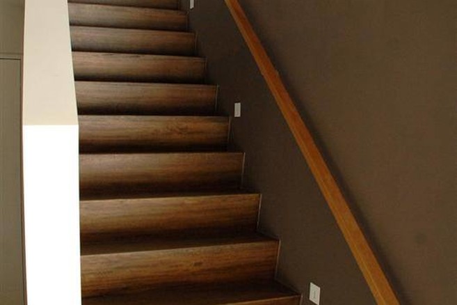 Het ontwerp is al even eenvoudig als ingenieus. Het gaat om een rechthoekige benedenverdieping in donkerbruin, voegloos metselwerk. Deze wordt gecombineerd met een eveneens rechthoekig, overkragend volume, dat bekleed is met een natuurkleurige lamellenstructuur in cederhout. Zo valt alle aandacht op de pure lijnen van het ontwerp en op de weloverdachte, compacte vormgeving.Binnenin verrast de woning door: