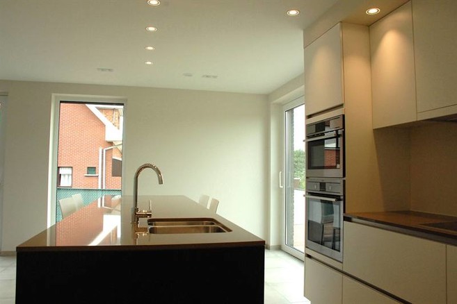 Deze kijkwoning van Dewaele Bouwbedrijven vind je terug in Werchter. Van buitenaf valt de compacte vormgeving op. Binnenin is er een groot gevoel van ruimtelijkheid. De woning blinkt verder uit in zijn energiezuinigheid.