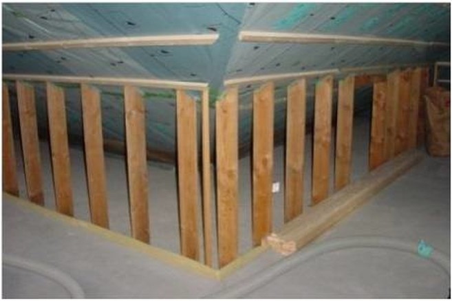 • Men volgt de binnenzijde van de spanten met bovenaan de horizontale trekkers en onderaan de verticale steunen.