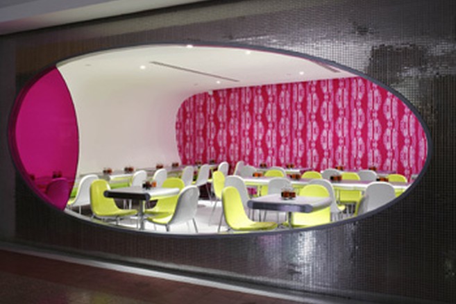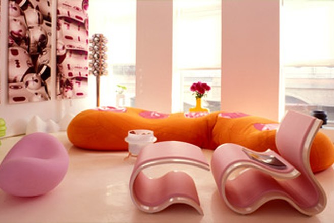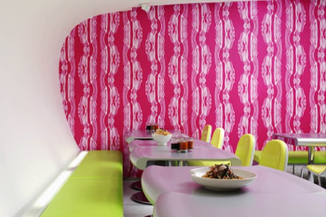In deze context ontwierp hij dan ook voor kunstdesignfabrikant -Edra- de prachtige zitmeubelcollectie :SuperBlob (foto 1 + 7). Deze “business of beauty”, zoals hijzelf zegt, deze menselijke behoefte naar culturele interieurs, vind je terug in het restaurant “Nooch” in Singapore (foto 8 + 9). Ook hier felle kleuren en organische lijnen, het handelsmerk van Rachid.