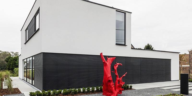 Een witte pleistergevel met een zwart metalen vlak en één uitgekiende raampartij, zo profileert de nieuwe kijkwoning van Groep Huyzentruyt zich langs de Geraardsbergsesteenweg 241b in Oosterzele. Daarmee licht de voorgevel een tipje van de sluier van het slimme woonconcept. De woning biedt een zee van daglicht in een geborgen cocon. Samen met het energiezuinige karakter, vormt ze zo een aangename leefomgeving.