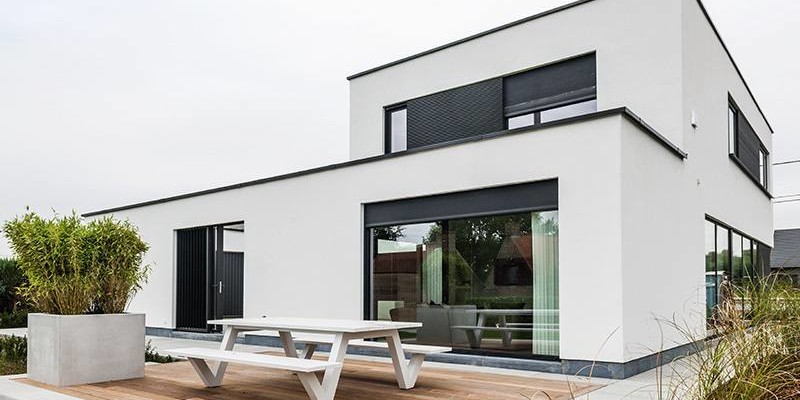 Met deze kijkwoning bewijst Groep Huyzentruyt dat het klaar is voor het wonen van de toekomst, zowel op architecturaal als energetisch vlak. Met een isolatiepeil K32 blijft de woning ver onder de wettelijke eisen. Het E-peil van 10 ligt veel beter dan wat de overheid in het kader van BEN-gebouwen eist tegen 2021. Het ontwerp van Rove Architecten is tijdloos en verzoent de zoektocht naar maximaal daglicht op sublieme wijze met gewenste privacy langs een drukke gewestweg. Bovendien slaagt Groep Huyzentruyt erin deze strakke, hedendaagse woning voor een betaalbare prijs te realiseren.