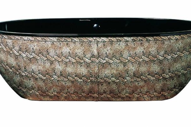 Eerst en vooral is er de zogenaamde Italiaanse versie, met de benaming ‘Lip Mosaic’. De gewelfde vorm van het bad wordt daarbij volledig bekleed met glasmozaïek, en zorgt zo voor een luxueuze, iriserende toets in de badkamer. Alle kleurnuances zijn mogelijk, of je nu gaat voor theatraal robijnrood of rustgevend ecru. Een andere versie van Stone One is die bekleed met tadelakt, een materiaal dat perfect de ronde vormen van het bad volgt, en de contouren verzacht. Veel opmerkelijker echter is de Stone One in de ‘Franse versie’, met een bekleding van... leder! Het lijkt een onmogelijk materiaal in de badkamer, maar dankzij een hightech behandeling vormt het materiaal in een vochtige omgeving geen probleem. Het resultaat is op z’n minst verrassend te noemen. En net als je denkt dat het niet revolutionairder kan, gaat Aquamass nòg een stapje verder: de ‘African Skin’ collectie maakt opnieuw gebruik van leder bij de bekleding van het bad, maar dan wel van struisvogel, slang of zelfs krokodil! Het klinkt bijna als een bad uit een sprookje.