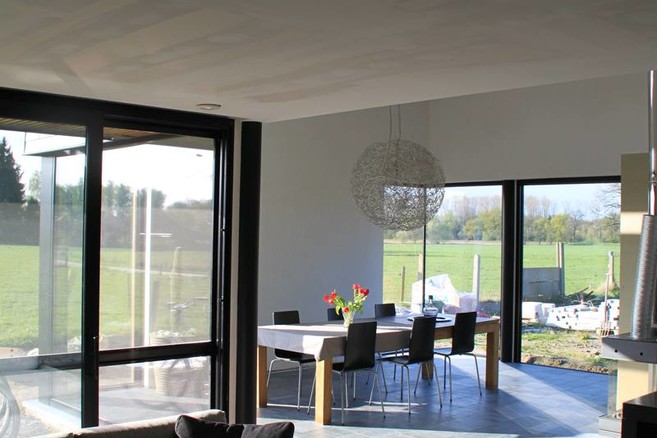 De charme van het platteland en de natuur en de nabijheid van centrum en autosnelwegen. Het is een zeldzaam gegeven. Maar tweeënhalf jaar geleden stootten Frank Nelis en Liesbet Wijnen op zo’n buitenkans. Voor Liesbet was het liefde op het eerste gezicht toen ze de woning en vooral de omgeving zag. Frank had zijn bedenkingen, maar ging uiteindelijk toch overstag. “De bestaande woning op zich had weinig charme. Ze ligt bovendien zonevreemd, wat de nodige beperkingen in de renovatie met zich meebracht. Maar de ligging van het perceel in deze omgeving is uniek,” vertellen Frank en Liesbet. De bestaande woning kneden naar de eisen van het gezin en daarbij de mogelijkheden van de omgeving benutten, was een hele opdracht. Daarvoor keek het koppel in de richting van Bjorn Vanoppen van Architecten Claes-Vanoppen. “Eigenlijk was het onze makelaar die Bjorn tipte. Een kameraad van hem had een positieve ervaring met Bjorn, bovendien beviel zijn stijl ons wel.