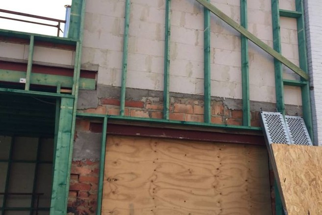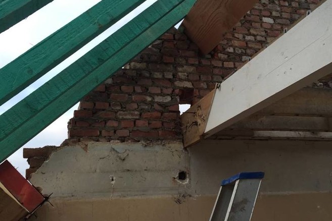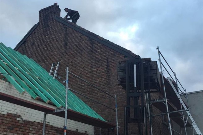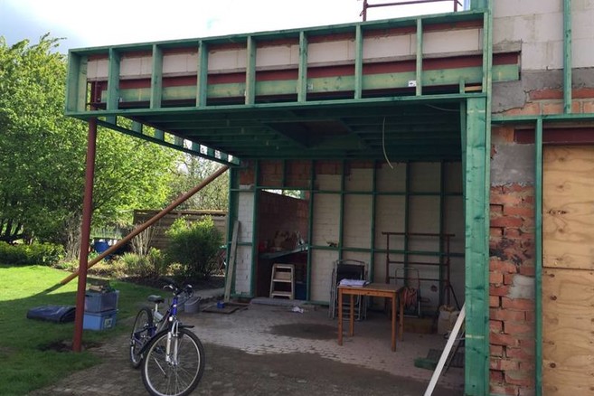 Om te beginnen hebben we de bestaande achterbouw gestript: het dak, de gevelsteen en oude vloeren werden volledig verwijderd.