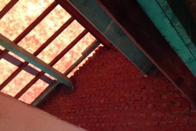 "Gezien de ruimtes bewoonbaar moesten zijn, is er aan de voorgevel een nieuwe dakkapel aangebracht. Deze is volledig ter plaatse uit getimmerd en geïntegreerd in de bestaande dakstructuur. Aan de achterzijde zijn een aantal dakvlakramen aangebracht. Ook is er in bepaalde ruimtes een nieuwe zoldering aangebracht. Dit door middel van een houten plafondstructuur. In de slaapkamer is de ruimte volledig open gehouden tot tegen het hellend dak. Dit om het ruimtegevoel te vergroten.”