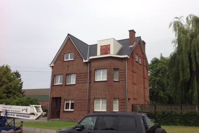 “Het bestaande dak bestond uit verschillende daken met verschillende hellingen. Gezien de ouderdom van de constructies was het dringend toe aan een renovatie. Bij de nieuwe bestemming moest de zolderruimte omgevormd worden tot een bewoonbare ruimte. In de nieuwe ruimte moest er een slaapkamer, een dressing, een badkamer en een muziekruimte met bibliotheek komen”, aldus architect Geert Houtmeyers.