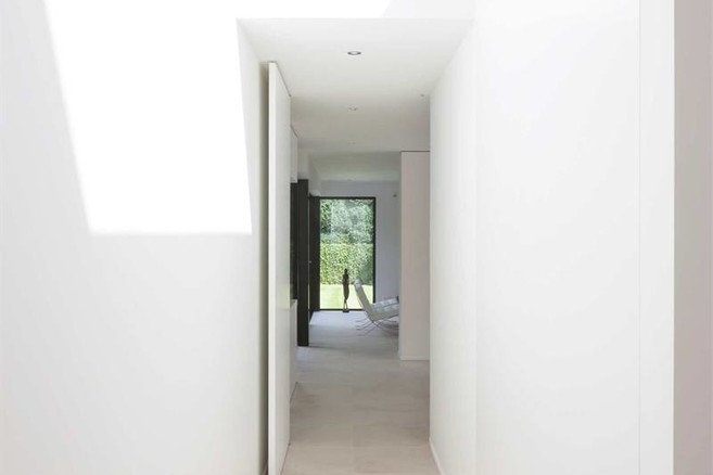 | Architect: Egide Meertens Architecten bvba Binnenhuisarchitect: Egide Meertens Architecten bvba Bouwjaar: 2011 Bouwmethode: dunbedmortel gevelmetselwerk Perceeloppervlakte: 905 m2 Bewoonbare oppervlakte: 287,99 m2 K-peil: 43 E-peil: 74 Budget: niet meegedeeld Materialen en techniekenGevel: gevelsteen Amsterdam Impression van Steenfabriek Desaegher gecombineerd met TrespaDakbedekking: EPDM (plat dak)Buitenschrijnwerk: aluminium (Schüco) Vloeren: keramische tegel (Pietra di Sardegna Porto Rotondo, 60 op 60 cm) Trap: houten trap, massief eik Interieur: voor het interieur (badkamermeubels, slaapkamers, bureau, inbouwkast leefruimte) werd gewerkt met satijnlak en fineereik met lintzaagmotief, gevernist voor de zichtbare delen. Keuken: Bulthaup (type b1) Isolatie: spouwisolatie: recticel eurowall 14 cm, plat dak: recticel eurothane silver 20 cm Ventilatie: systeem D, warmteterugwinapparaat Verwarming: gascondensatie, vloerverwarming op gelijkvloers en eerste verdieping |