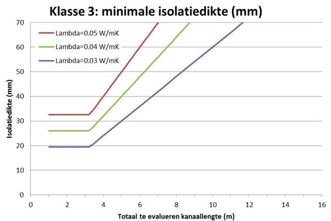 - Thermische isolatie van luchtkanalen: opdeling in klassen, de voorbeeldfiguur is voor klasse 3